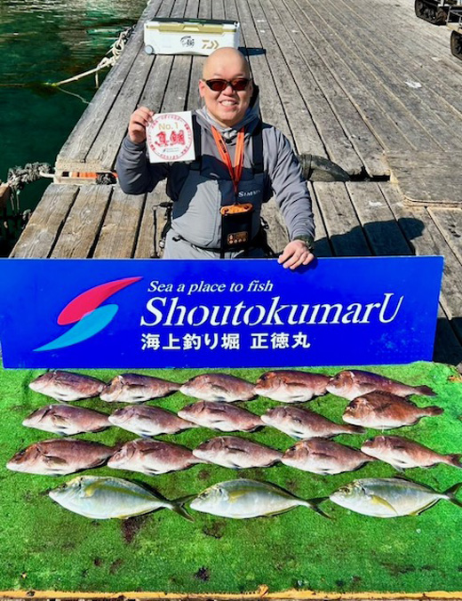 2月4日、愛知県の渡辺さんがマダイを15尾、シマアジを3尾仕留めました!お見事です!