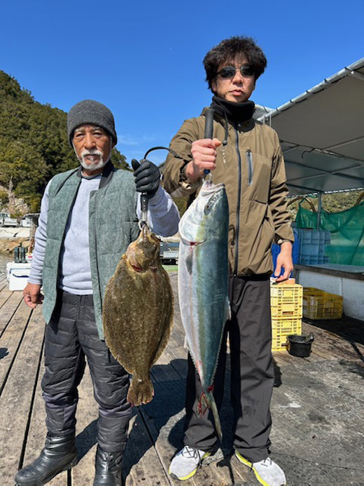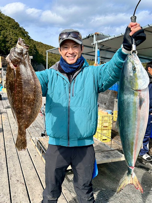 2月14日、大阪府の比良さんがヒラメをと伊勢ブリをゲット!