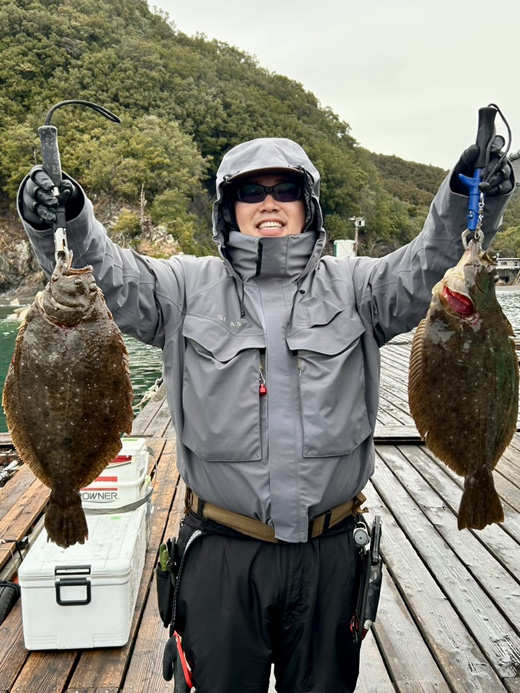 2月11日、愛知県の深谷さんが両手にヒラメをダブルでゲット!