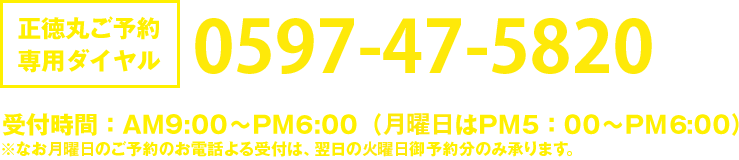 なおメールによるご予約は行っておりませんのでご了承のほどよろしくお願い致します。